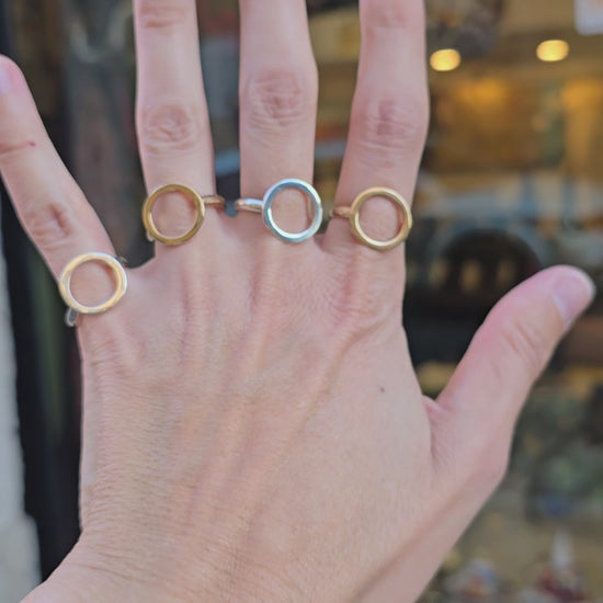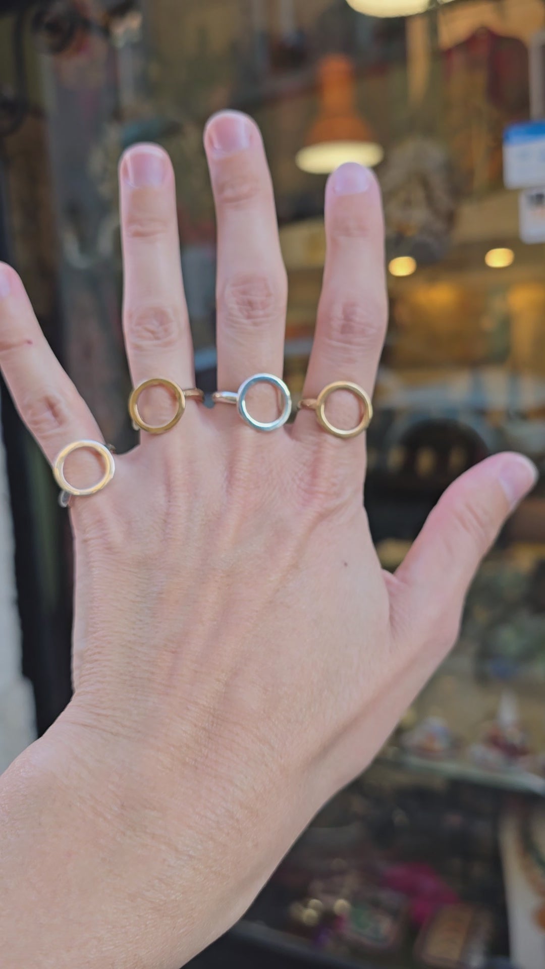 La seconda versione dell'anello "piu' vuoto dentro" che c'e': l'Olive ring da ovale diventa rotondo, prende il suo vuoto interiore e quantomeno lo centra, si centra sull'idea che un vuoto contenuto e' comunque meglio del vuoto pneumatico, trasformandosi all'insegna di un'armonia leggera.